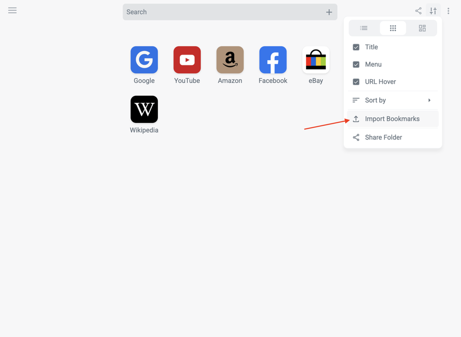 It is very easy to import bookmarks. We support HTML format. Here are some examples of how to export bookmarks from the browser.