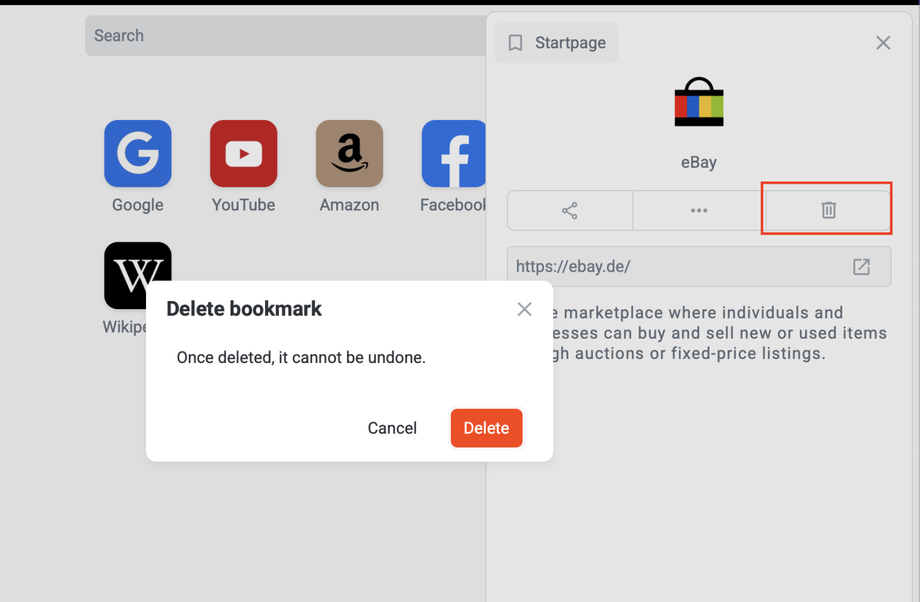 You’ll be asked to confirm the deletion — once confirmed, the bookmark will be deleted.