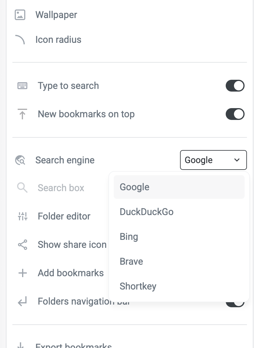 Select your preferred search engine from the list